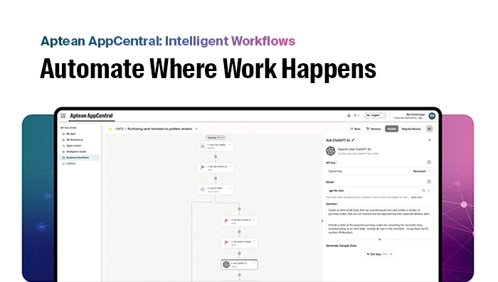Datasheet 31 Oct 2025Aptean Intelligence: Role-Based WorkspacesDiscover how Aptean Intelligent Workflows in AppCentral streamline operations, improve visibility and enhance decision-making across your business.Download