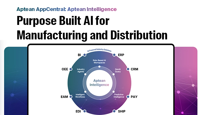 Datasheet 31 Oct 2025Aptean Intelligence: AI for Manufacturing and DistributionEmpower your teams with Aptean AppCentral Intelligence — uniting data, insight and automation to drive smarter, faster business decisions.Download