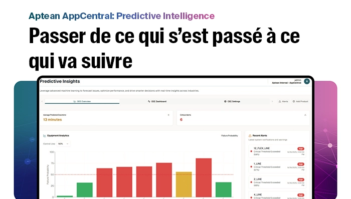 Datasheet 22 Déc 2025Aptean Predictive Intelligence : de ce qui s'est passé à ce qui va se passerExploitez la puissance de l'intelligence prédictive d'Aptean AppCentral : anticipez les tendances, optimisez les performances et prenez des décisions plus éclairées, fondées sur les données.Télécharger