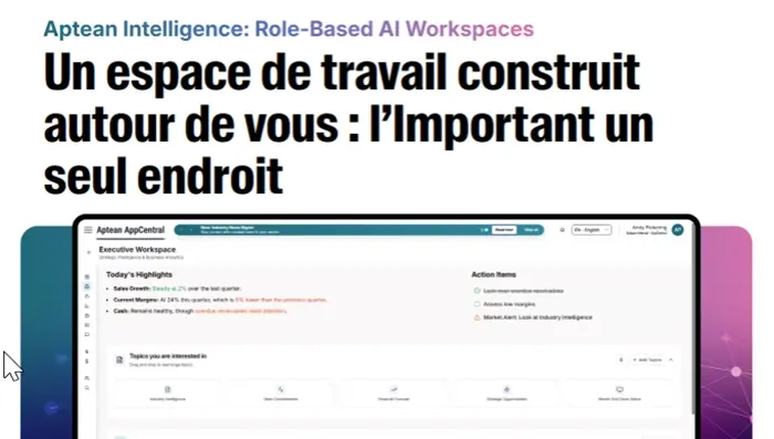 Datasheet 22 Déc 2025Aptean Intelligence : l'IA au service de la fabrication et de la distributionDonnez plus de moyens à vos équipes grâce à Aptean AppCentral Intelligence, qui combine données, informations et automatisation pour prendre des décisions commerciales plus intelligentes et plus rapides.Télécharger